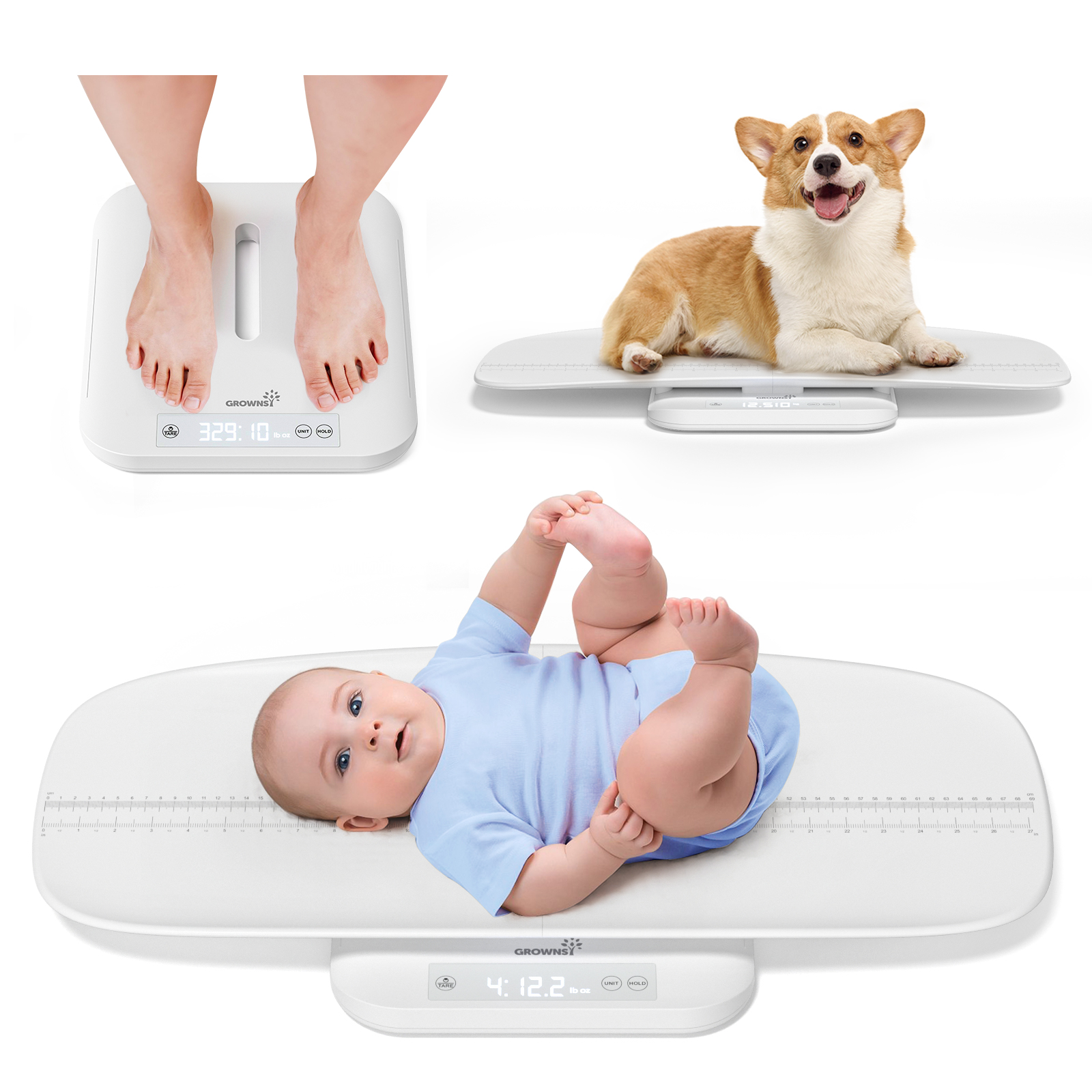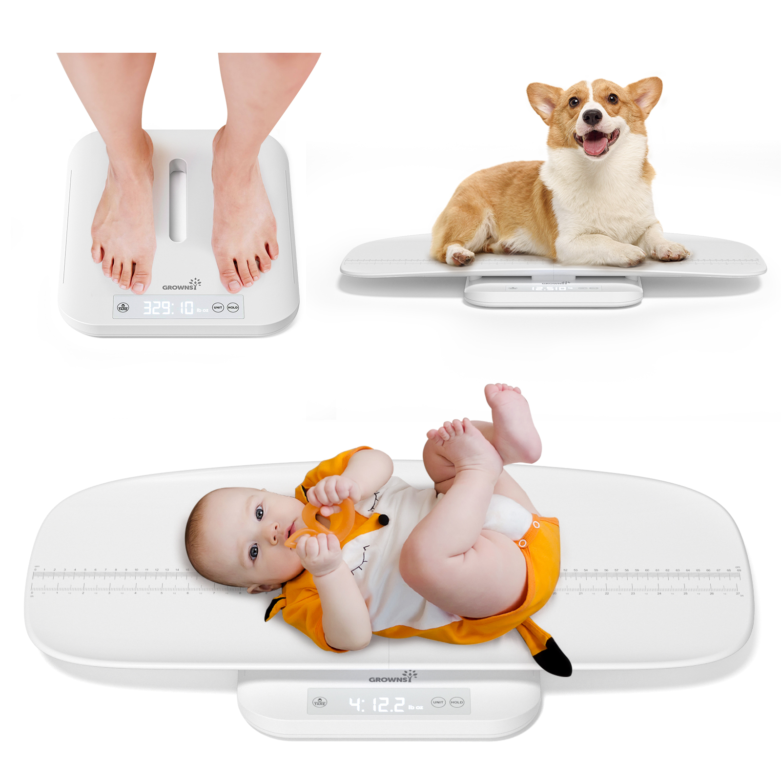 𝐄𝐚𝐬𝐲 𝐭𝐨 𝐔𝐬𝐞 𝐚𝐧𝐝 𝐒𝐭𝐨𝐫𝐞: With a touchscreen button, auto-off function after 2 minutes of no operation, and detachable design, this digital scale is easy to assemble, use, and store. Grownsy's baby scale is the perfect companion for monitoring your baby's growth and development with ease.