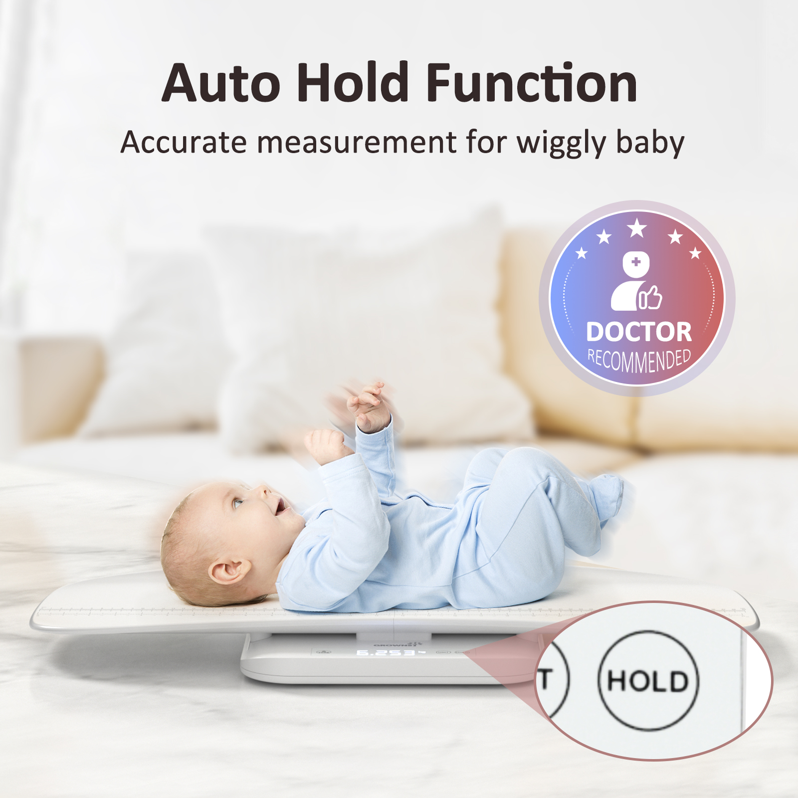 𝐇𝐨𝐥𝐝 𝐅𝐮𝐧𝐜𝐭𝐢𝐨𝐧 𝐢𝐧 𝐌𝐨𝐭𝐢𝐨𝐧: Even if your baby is moving or wiggling, you can obtain accurate measurements with the automatic or manual hold function.
