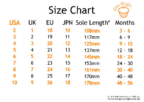 • Size 5+: with specially designed MuffinSoles on the heel areas that absorb walking pressure.