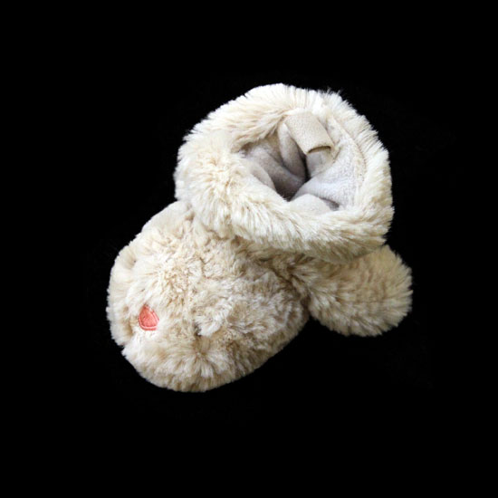 This is a pair of baby shoes with a lovely design. Each piece features a rabbit appearance with long ears for added cuteness. The soft fabric keeps your little baby warm on cold days.