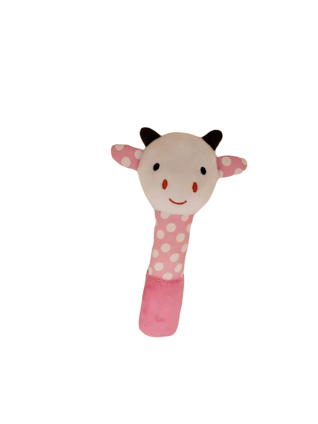 Cartoon Stuffed Animal Baby Soft Plush Hand Rattle Squeaker Sticks for Toddlers - Cow