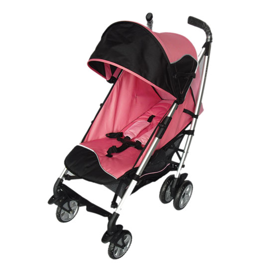 This stylish baby stroller is available in black and pink. The large canopy shields harmful rays for your little one. The reclining angle is adjustable for the maximum comfort for your kid.