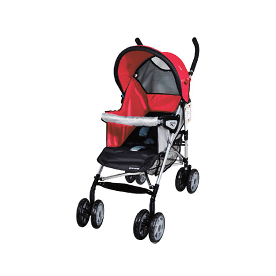 Featuring a black and red finish, the baby stroller comes with four big wheels for smooth movement. The stroller offers a padded seat for the comfort of your baby. Fitted with a canopy, the stroller brings extra safety and privacy to your little one.