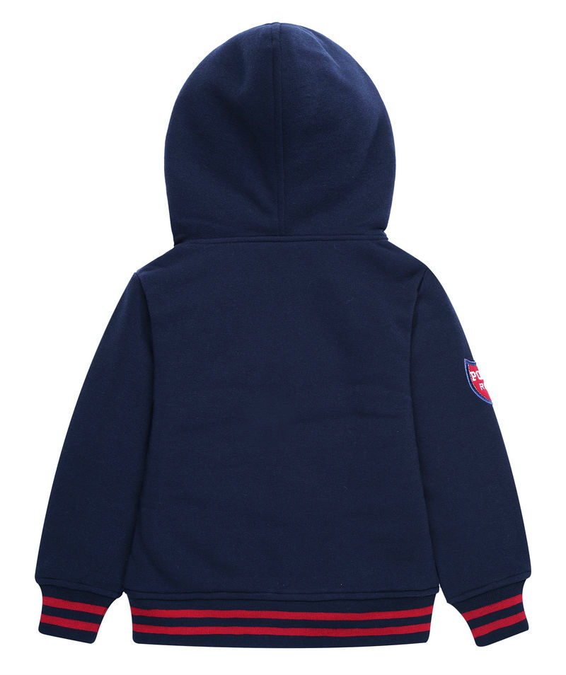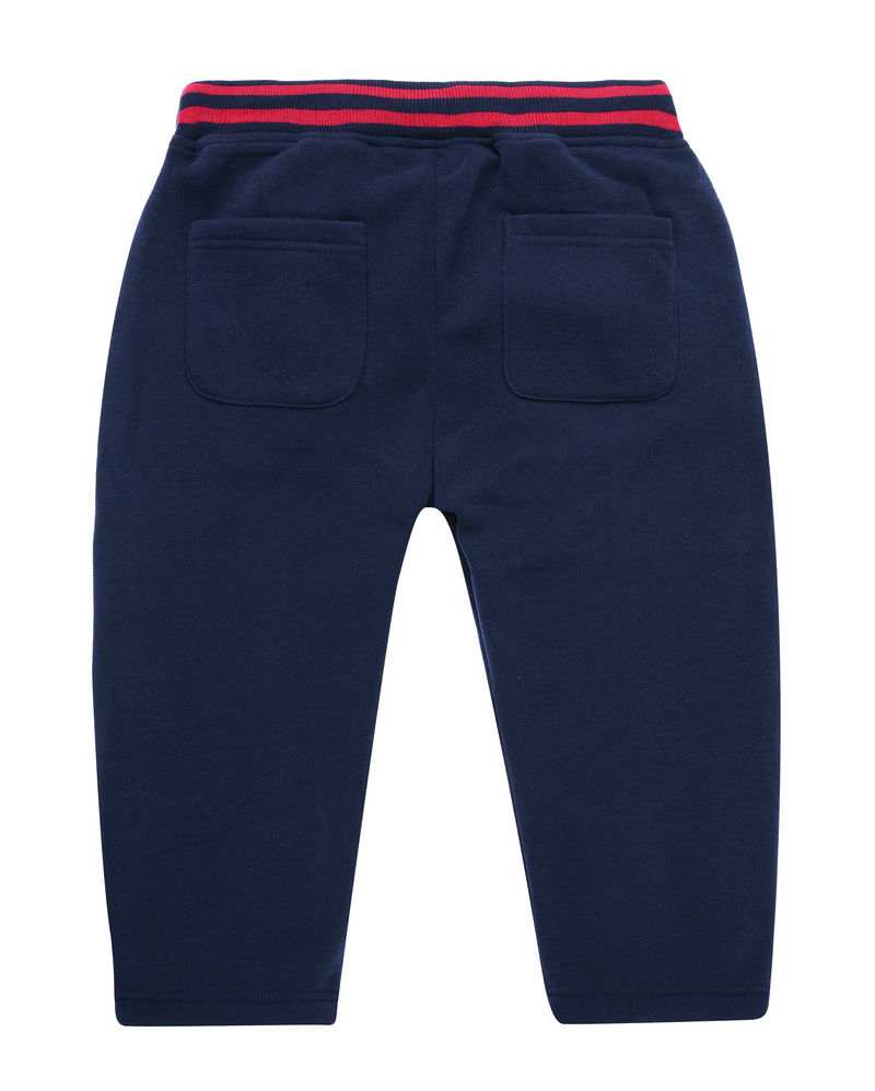 Great tracksuit with embroidery details is for kid. Soft material, thanks to inner coral fleece makes it easy to wear, as well as cute embroidery at the front of the top and pant, striped ribbed cuffs, waist and hemline. Comfortable for doing sports as well as casual