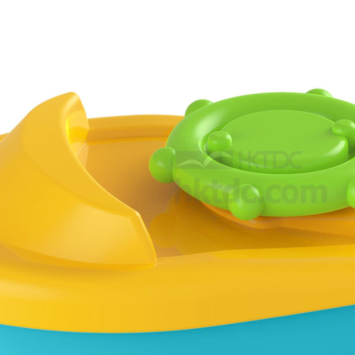 Cute shape with top spout, waterproof bottom, and switch, the rotating steering wheel can be disassembled. The bottom of the boat toy has installed an automatic pumping system, easy for operating. It's a good interaction toy, also will make your baby full of happiness when taking a shower, baby bath good companion.