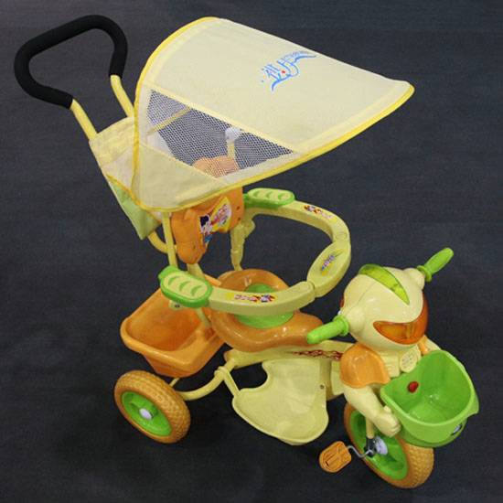 This plastic baby tricycle comes with a robot as the head of this toy bike. The adjustable armrest and the handle bar provides the best position for your baby. This baby tricycle has a sturdy structure.