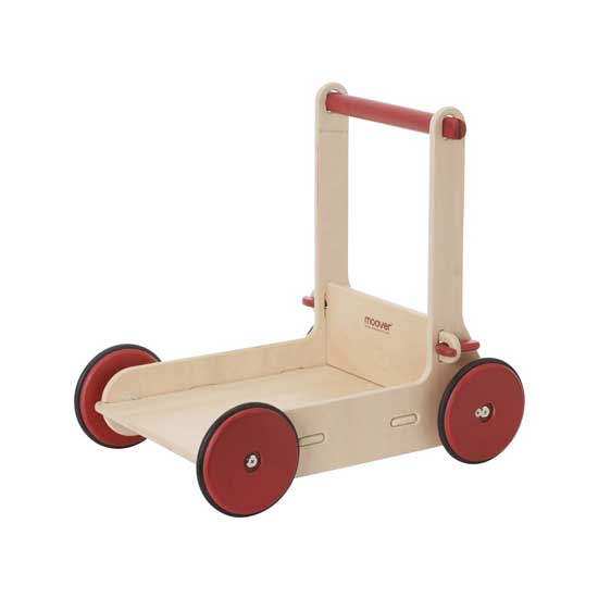 This is a baby walker that comes with a sturdy structure. In a natural wooden color, this baby walker features shock-absorbing rubber handles and wheels. The wheel resistance level can also be adjusted for flexible usage.