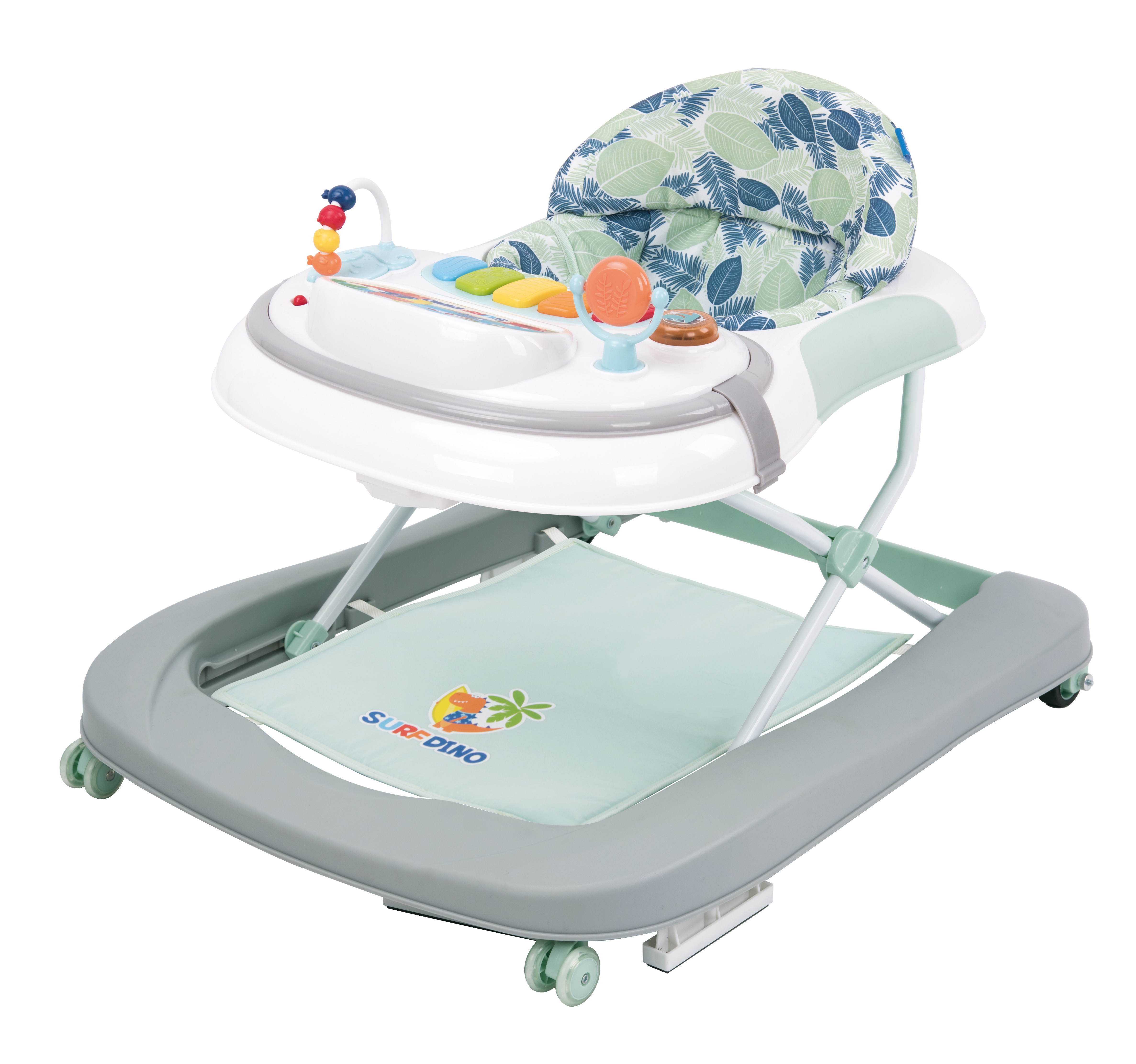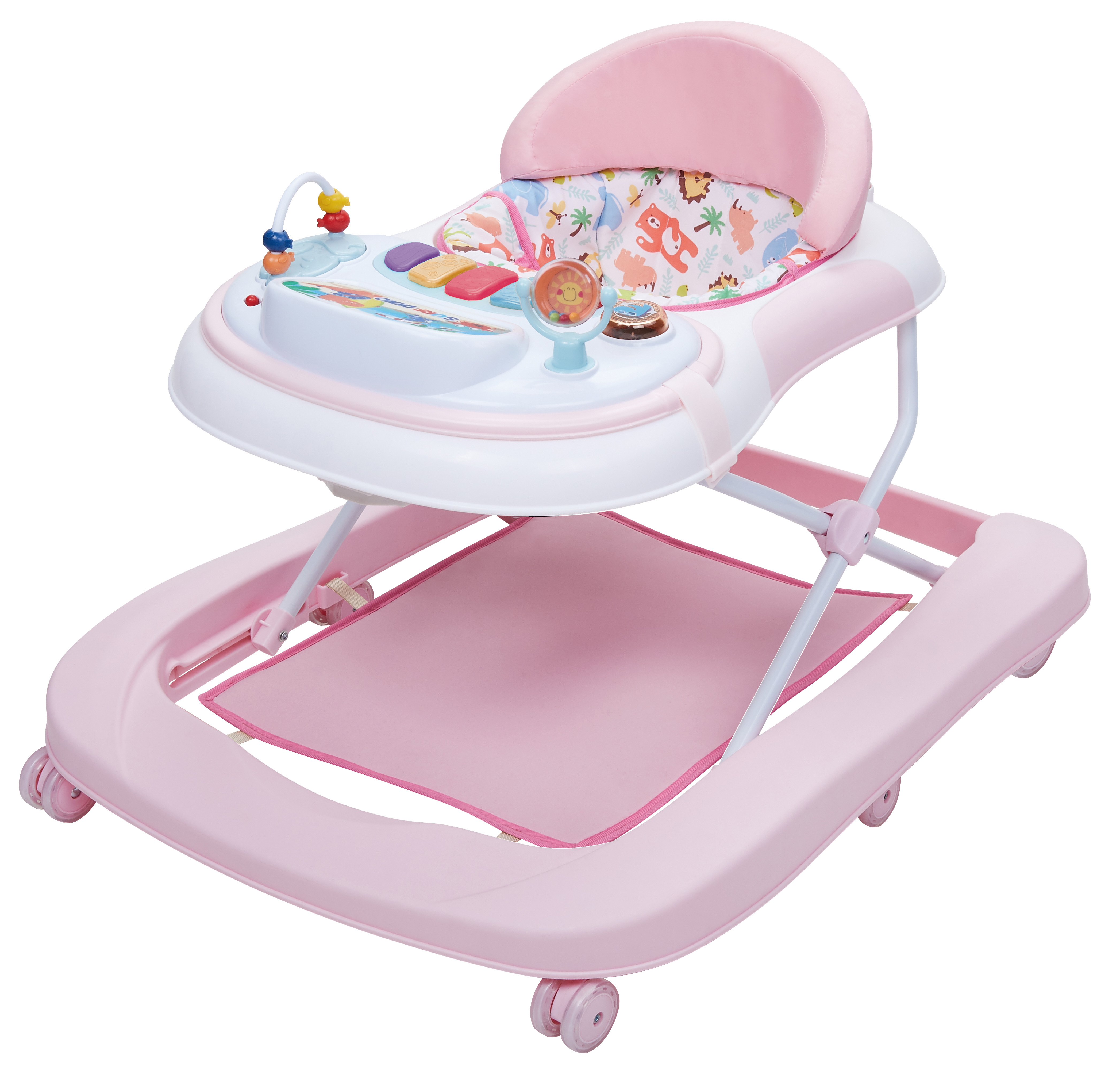 A beautifully crafted tool that elevates babies’ early learning experience. The walker's structure is comprised of soft, cushiony fabric and a sturdy frame to ensure both comfort and safety. The adjustable seat grows alongside the child, promising longevity and economic use for parents.
