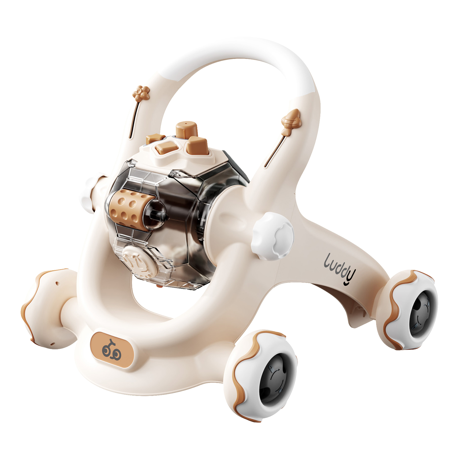 The baby walker is the perfect aid for little ones taking their first steps, combining safety with interactive play. Designed with a central play roll, it features a collection of engaging interactive elements that stimulate curiosity and promote sensory development. Bright colors and adorable design captivate and entertain, while sturdy construction ensures stability and support as toddlers push along. The ergonomic handle is designed for small hands, providing a comfortable and secure grip. This push walker not only encourages mobility and balance but also enriches playtime with its multifunctional design, making it an essential tool for early development.