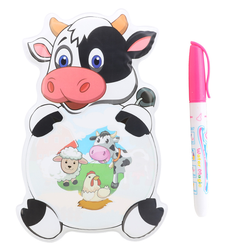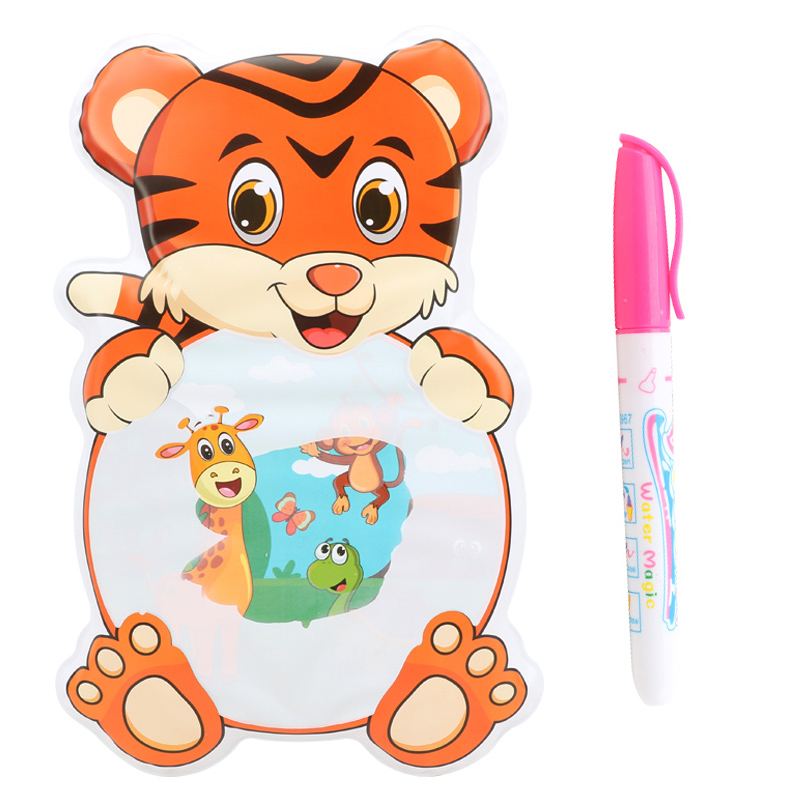 QS Factory Kids Early Educational Cartoon Animal Eva Color-Changing Clean Pattern Canvas Kids Water Painting Cloth Book With Pen