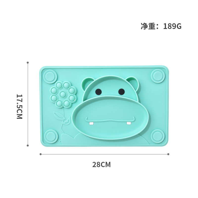 Silicone plate with 2 sections, embossed pattern on outer wall provides unique looking, non-slip base prevents product slipping on table, food grade silicone, BPA FREE and soft-touch material ensures user safety, slight curve at inner bottom aims for easy scooping.