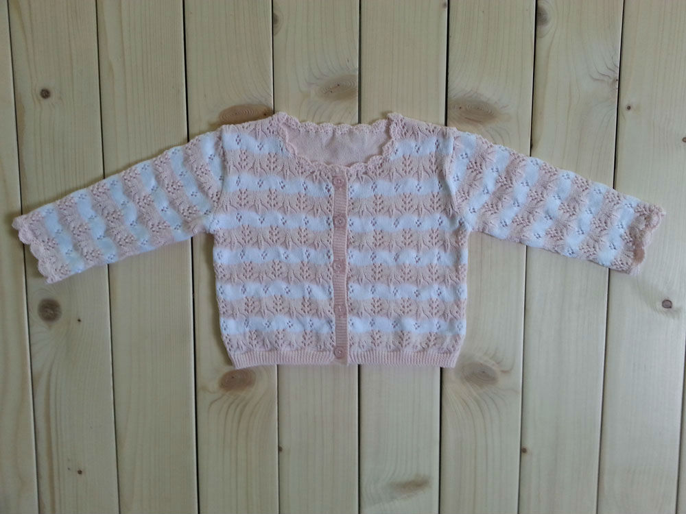 Spice up your baby girl’s autumn with this adorable cardigan. Featuring long sleeves and round neckline, this pink-and-white striped outer piece comes with crochet scallop details on collar and cuffs for enhanced attractiveness. Finely knitted with cotton yarn, it promises comfy wearing from day to night.