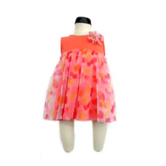 This lovely baby's red dress is printed with cherry patterns throughout the whole piece. The gathered-over skirt is accented with a raw hem. The diaper pants finish the design of this piece.