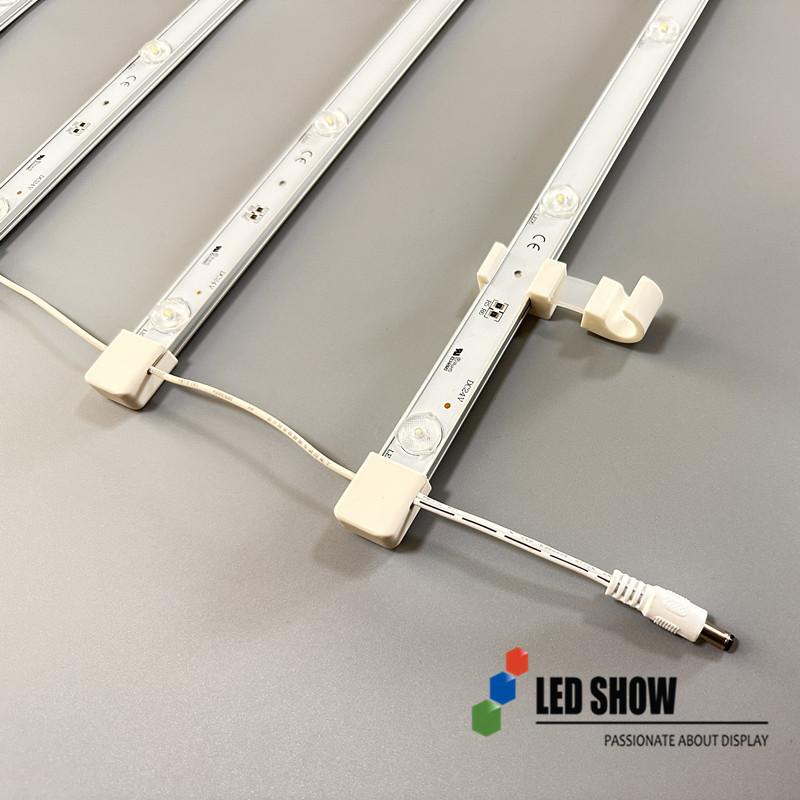 Lighting in advertising is installed as below, max 3 rolls LED curtain lights connected with one slim power supply.