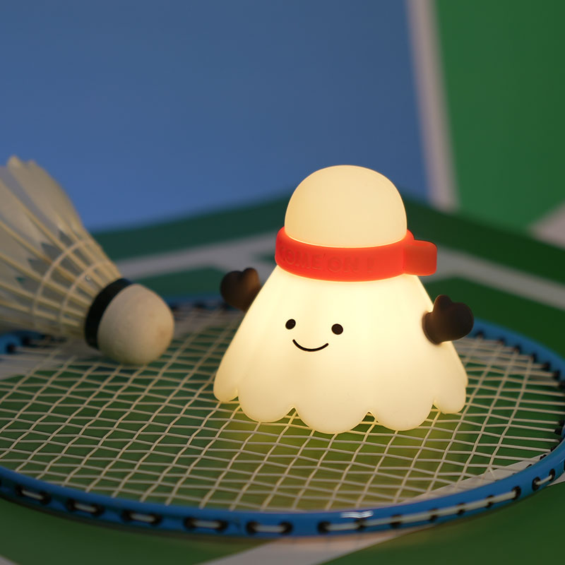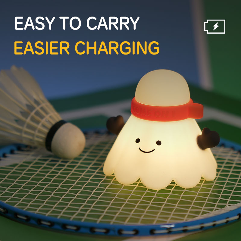 Cute Badminton Silicone Night Light, Rechargeable Tap Dimmable Warm Light for Kids Bedroom