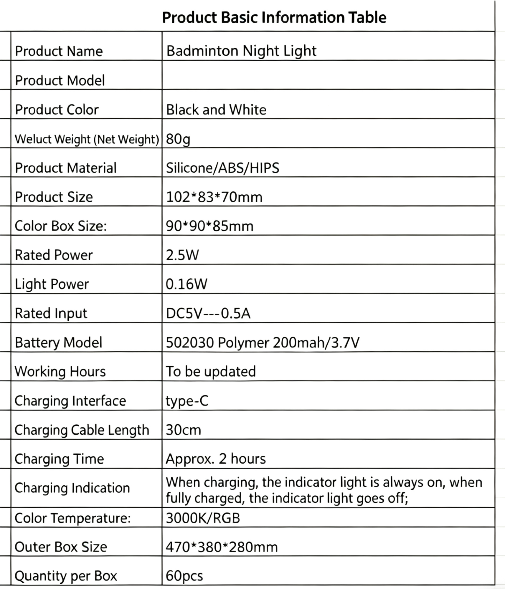 With simple tap dimming, you can adjust brightness effortlessly. The built-in rechargeable battery offers up to 6 hours of use on a single 2-hour charge, with convenient Type-C charging. Its cute, compact design makes it easy to carry anywhere, while the playful badminton character adds a fun, decorative touch to any space. A great gift for kids, students, and badminton enthusiasts!