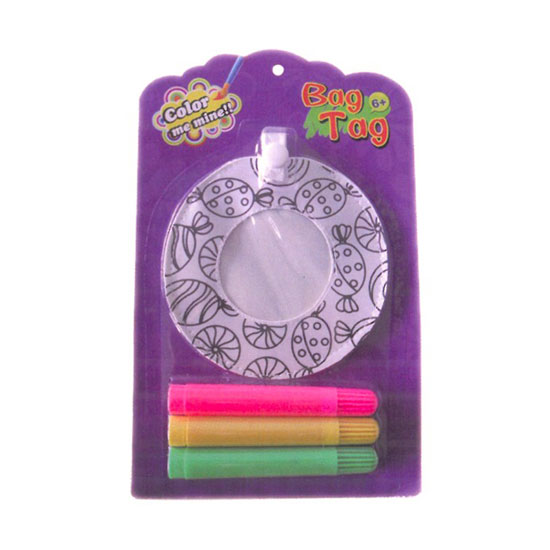 This is a DIY bag tag with three color pens. It is made of quality materials for a long service life. This interesting craft kit is ideal for kids aged six years and above.