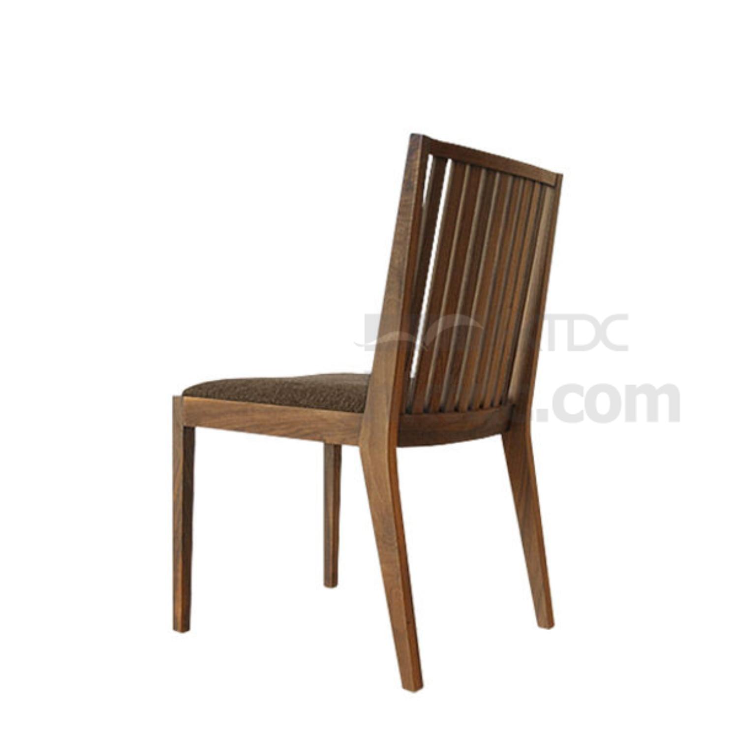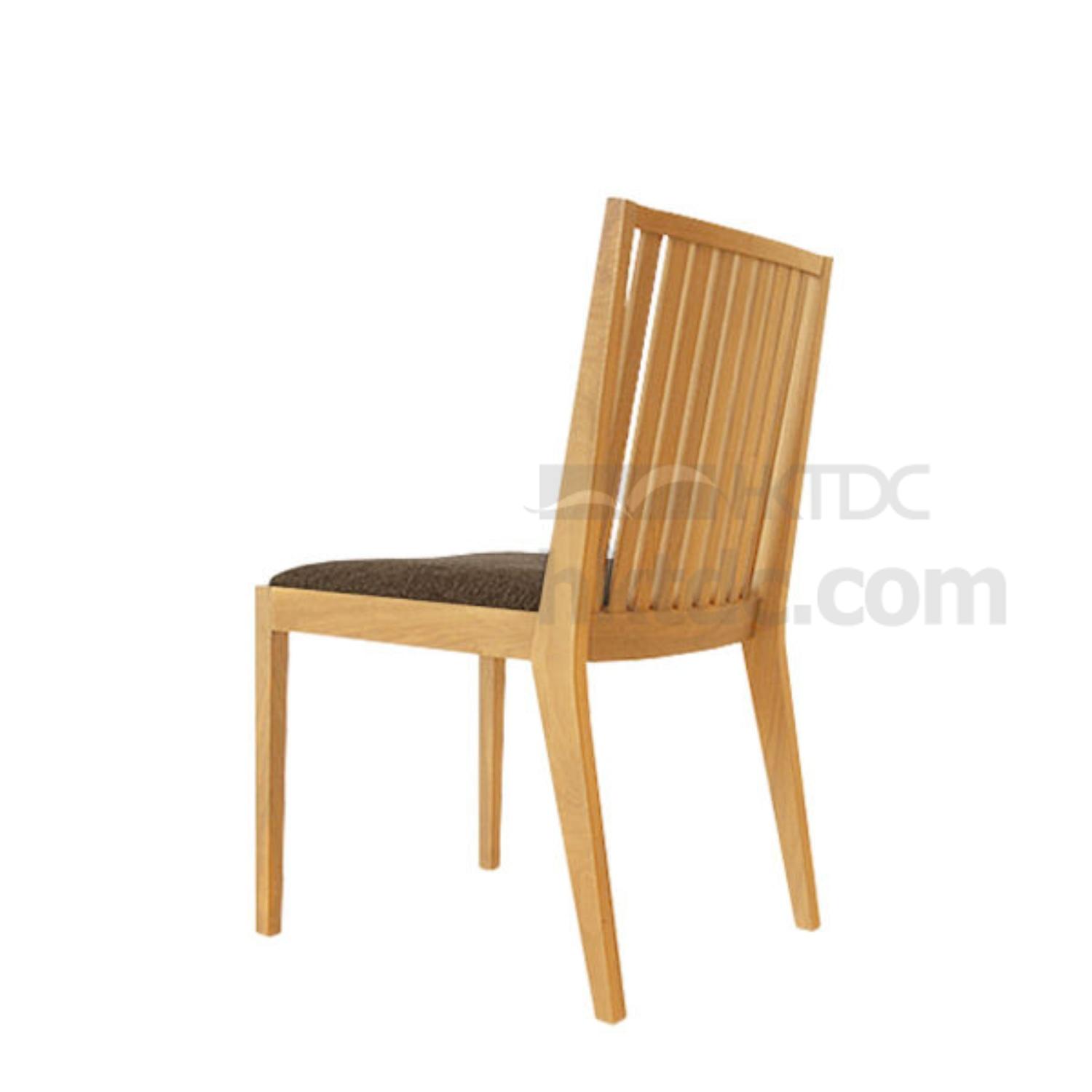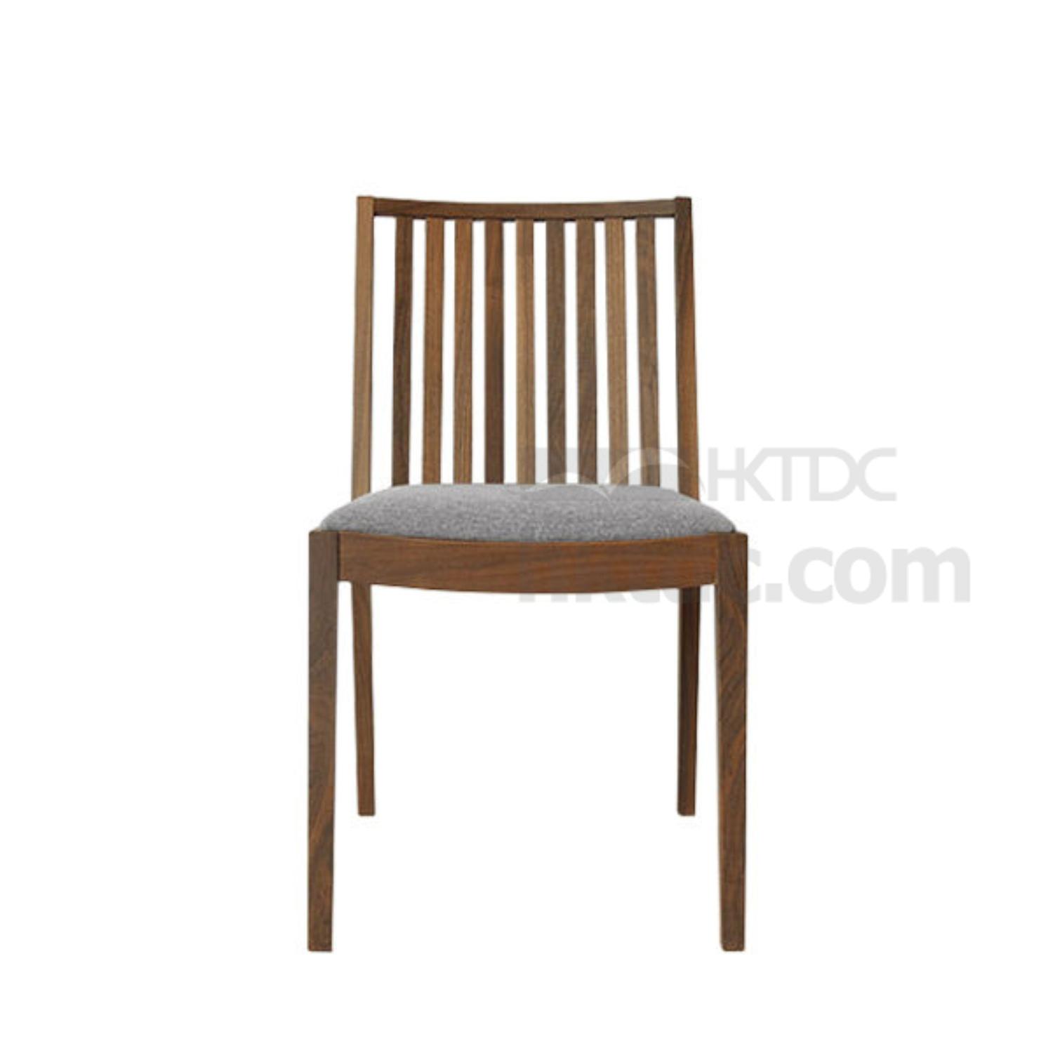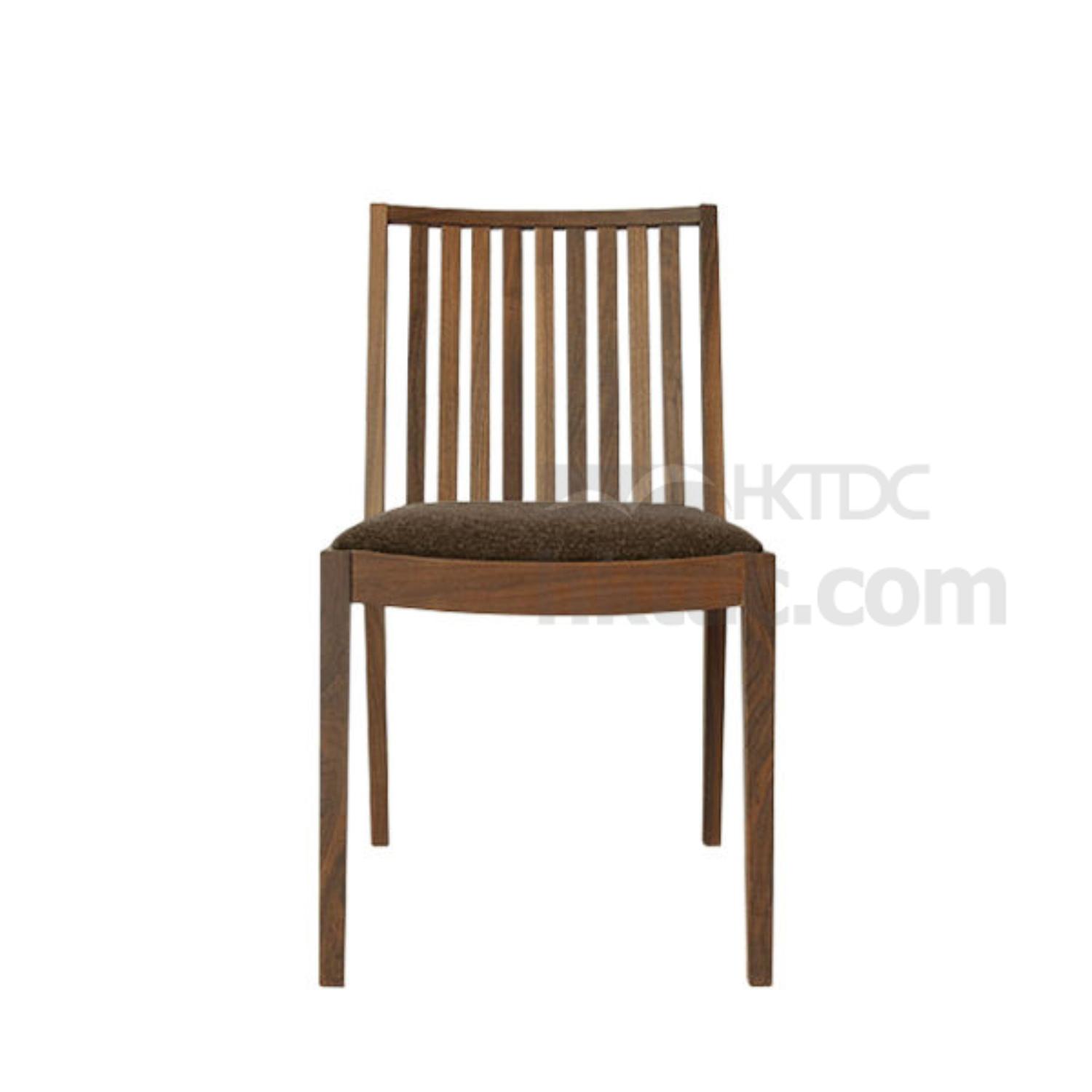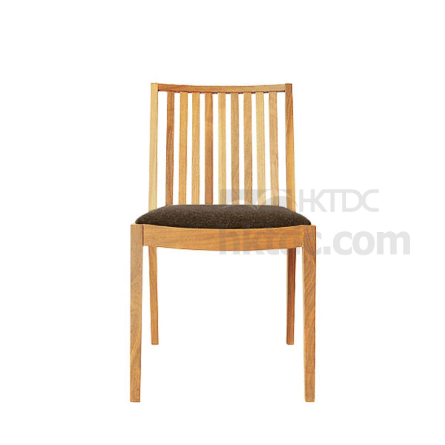 This is a wooden slatted dining chair with beautiful wood grain pattern to complement any rustic home décor. Featuring full back rest as well as padded seat, this dining chair is superbly comfortable to sit on. Designer has incorporated tapered rear legs to the piece, adding some modern elements to this minimalist dining furniture.