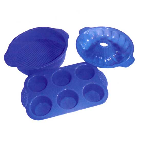 Featured is a bakeware set in 3-piece design. They are made of silicone for durable use. This bakeware set is an ideal tool set for baking lovers.