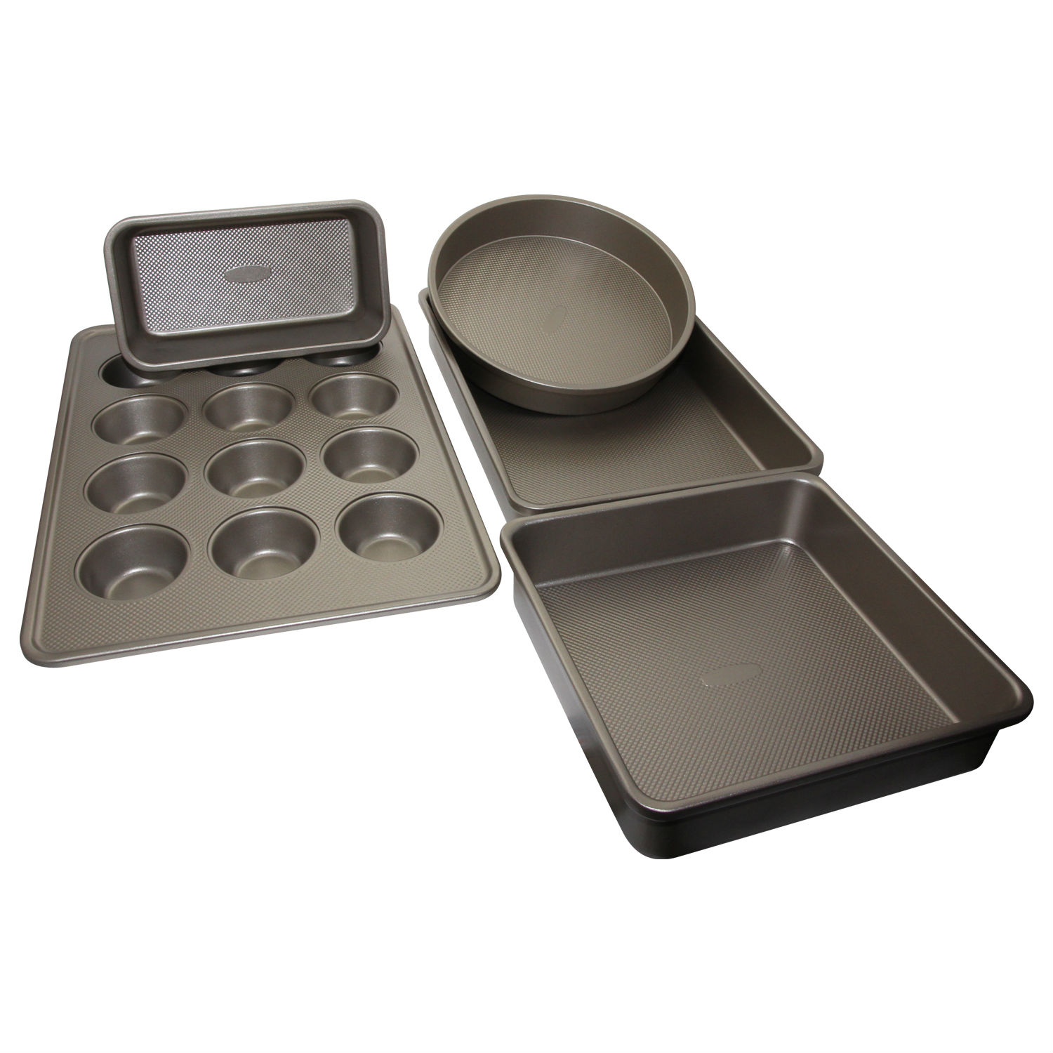 Design / Function: Baking ware all in one set, includes round cake pan, loaf pan, square cake pan and roaster pan