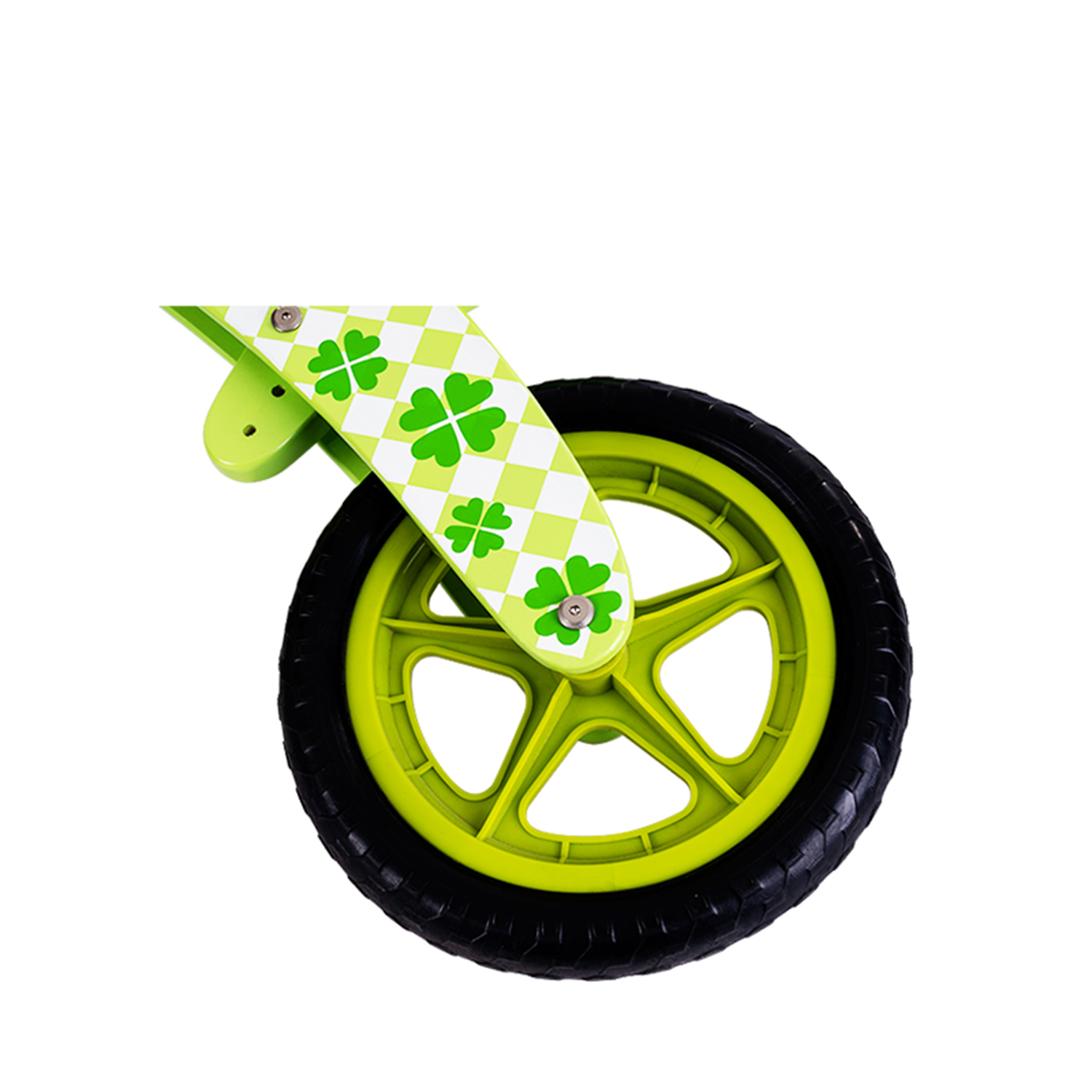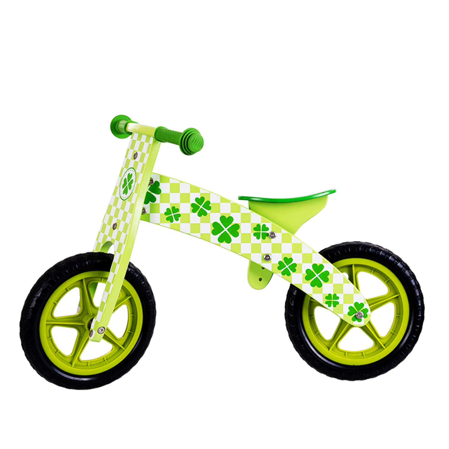 Take your adventurous tot on a thrilling ride-on journey with this balance bike. Peppered with beautiful clover motifs over every nook and cranny, the flaring bicycle is made to last with solid plywood and a combo of rugged wheels to escort your little one back and forth the playground in safe hands.