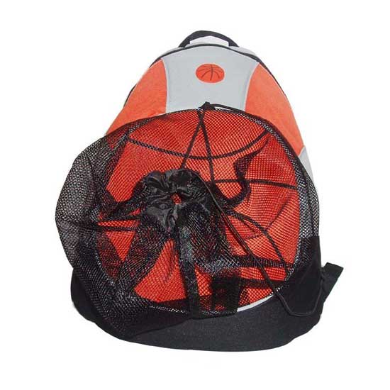Featured is a backpack designed for carrying a basketball. The mesh front pocket offers sufficient space for a standard basketball. The sharp orange-and-black combination makes it perfect to accomplish a sporty look.