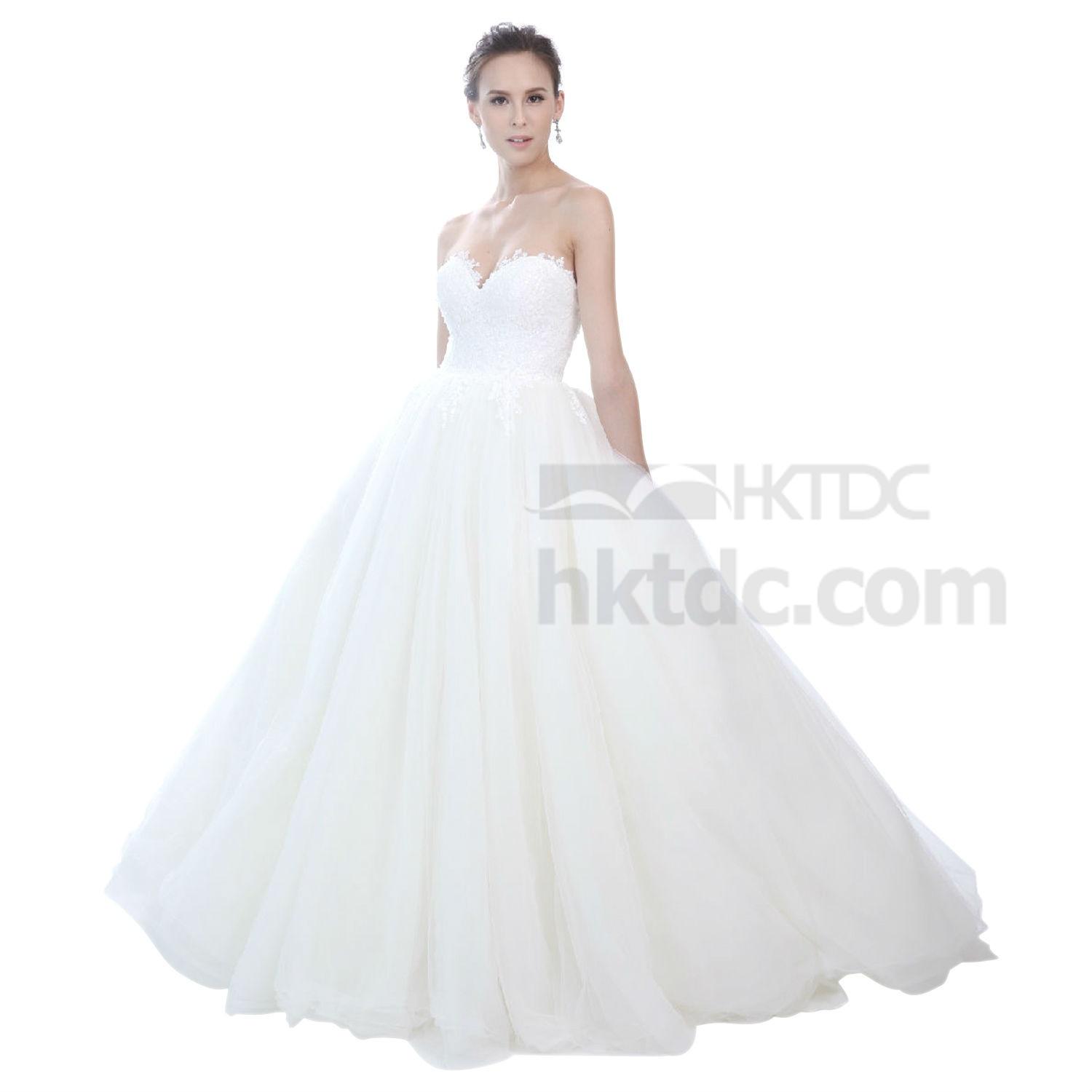 Celebrate your happily ever after with your prince charming with this breathtaking wedding dress. The dreamy ball gown takes form of a sweetheart neckline with an empire waistline to nip in your figure for a slenderer look. Trimmed with Swarovski crystals, the dress flares out at the waist and cascades elegantly down to the floor with a chapel train.