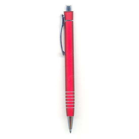 As shown is a solid metal ball pen. It is of a clicky-top design. Logos and words can be further imprinted onto the shaft.