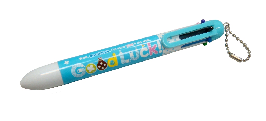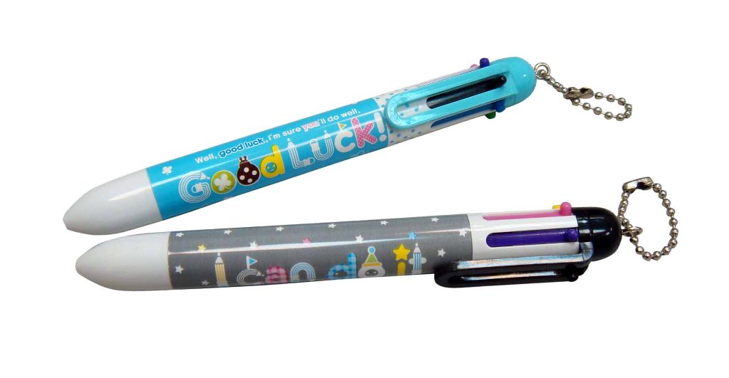 Enjoy a smooth and convenient writing experience with this multi-color ball pen. It has a plastic barrel printed with lovely patterns and offers multiple ink colors to suit your needs. This multi-color ball pen has a ball chain on top for attachment and is great for school, office or promotional use.