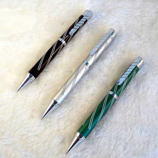 Showcased is a gorgeous ball pen coming with a metal structure. The barrel features diagonal stripes and a nice matt finish. The mechanical design makes this pen a handy choice at all time.