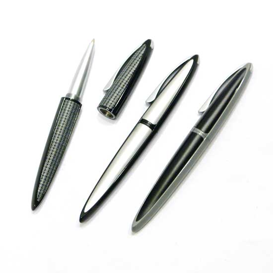 This is a ball pen with a fabric-covered barrel that offers a good hand feeling. Its pen tip uses a ball roller to promise smooth gliding. This ball pen is a reliable writing instrument for writers and pupils.