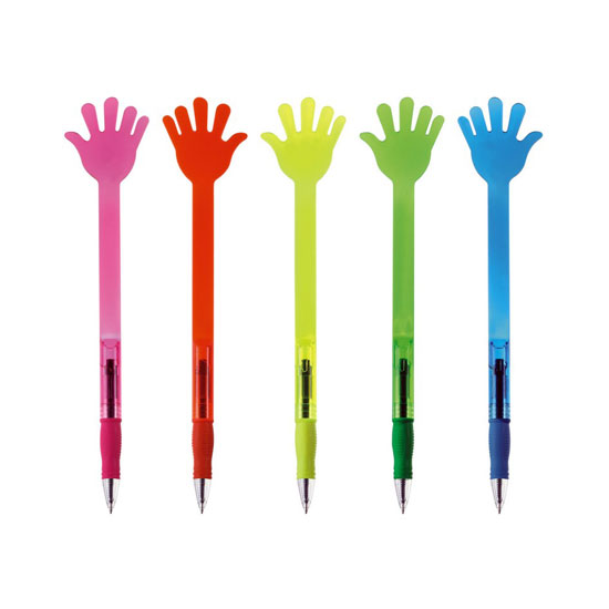 This one-color ball pen comes with 5 colors for your selection. It is nicely adorned with a hand design on top. The top grade ABS tip ensures a wonderful writing experience.