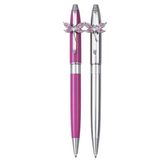 These engaging ball pens are made of copper for durability. They are accentuated by the exquisite dragonfly-shaped embellishments on their clips. The ball pens make novel yet practical presents for your friends.