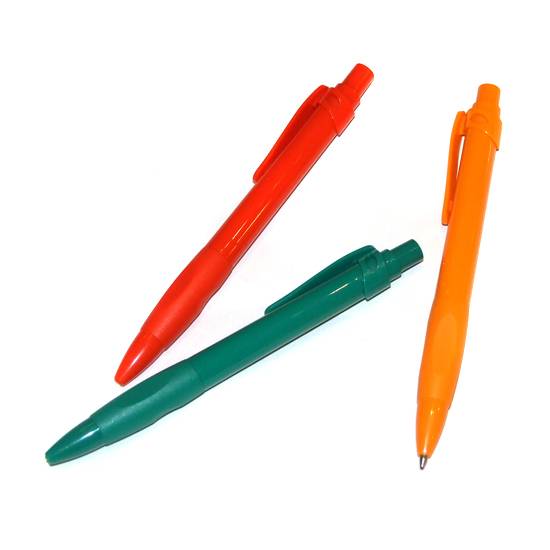 These are ball pens which are made of recyclable and degradable plastics. The pens are of push pen style and are comfortable to write with.