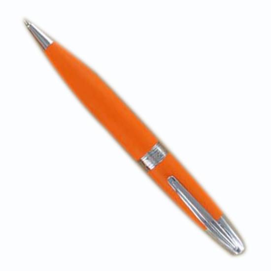 The smart-looking ballpoint pen features a sharp orange barrel. The sleek silver-plated finish adds a modernity touch to the simple design. This ballpoint pen makes a great writing instrument for students and office workers.