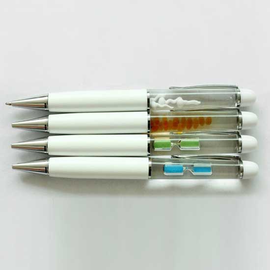 This is a promotional ball pen with a modern design. The upper barrel features a lava-lamp like design for added uniqueness. It is accented with a silver or a golden clip for added style. It ensures a smooth writing experience.