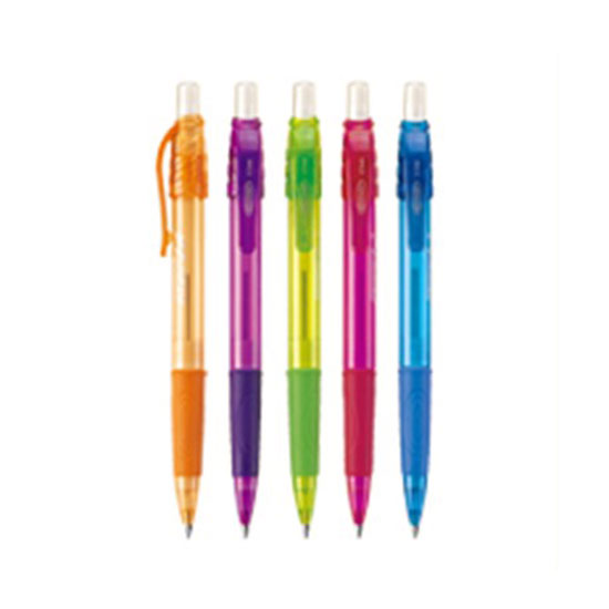 This is a ballpoint pen with a simple design. It features a semi-transparent barrel which allows users to see the amount of usage of the internal refill. Multiple bright colors are available for your selection.