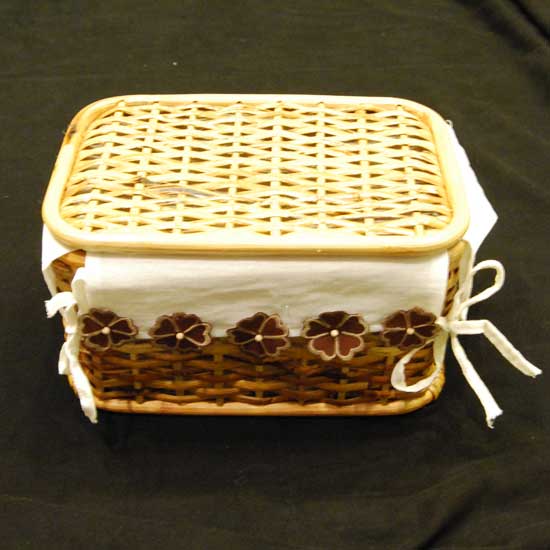 The bamboo basket flaunts a rectangular shape. It is skillfully woven to give a delicate finish. This basket with floral decoration can be used to store different items.