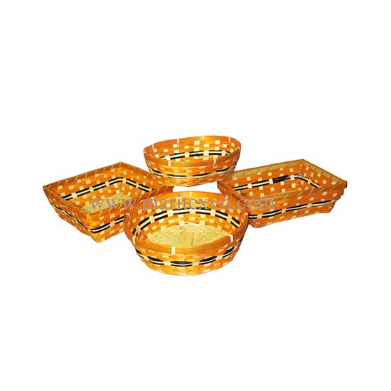 This is a bamboo basket that comes in assorted shapes. Professionally woven, these baskets are colorful and fashionable. These high quality bamboo baskets are great for serving bread.
