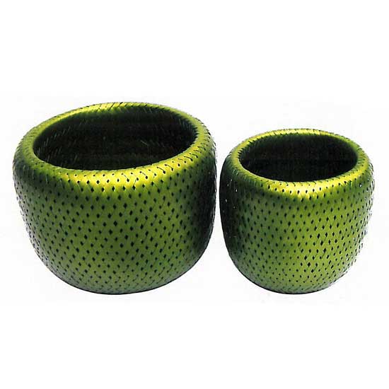 The flower pot comes in different sizes in green color. It is hand crafted to give a delicate finish. This flower pot is made of top-grade bamboo to give a durable construction.