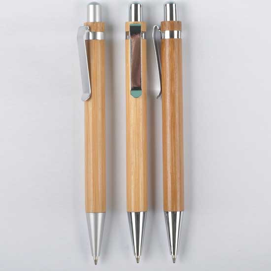 Showcased are three bamboo pens coming with a retractable design. Their barrels in a wooden tone exude an appealing primal touch. The pens can be attached to your pockets or notebooks easily with clips.