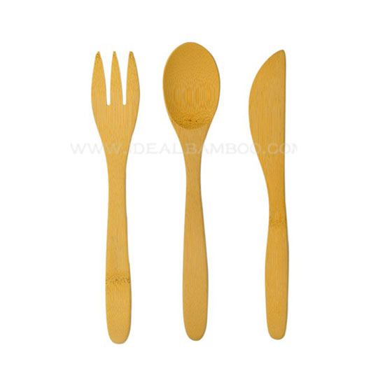 This is a tableware set featuring a fork, a knife and a spoon. The tableware is made of quality bamboo and is durable. It will not absorb odors and is perfectly matched with any style of your tableware with its simple design.