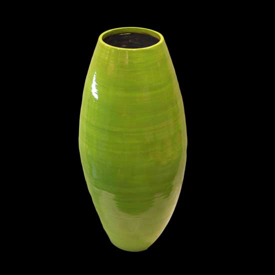 This modern oval vase is painted in brisk green with a glossy finish. It is crafted from bamboo for durability. This charming vase adds spice to your home instantly.