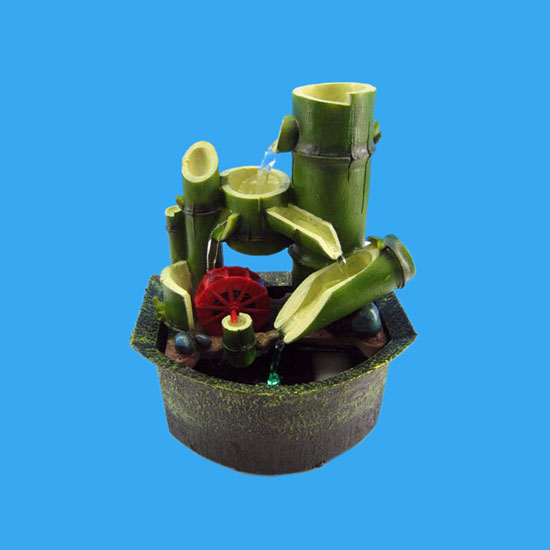 Carefully made, this miniature bamboo water feature is artful and natural. The bamboo craft exhibits nice craftsmanship. This delicate bamboo water feature will surely brighten your living room.