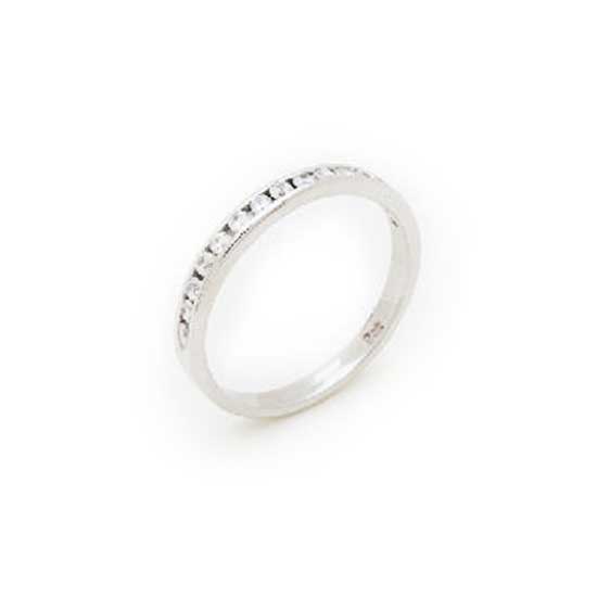 This 18K eternity band ring is encrusted with a row of twinkling white diamonds. Professionally engineered, it can retain its lustrous appearance for a long time. This succinct yet tasteful band ring is a great addition to your jewelry collection.