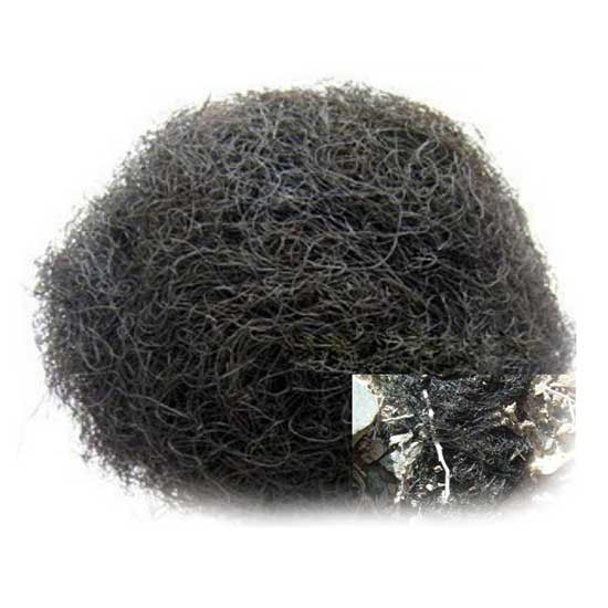 Displayed is bangia alga that is professionally cultivated in freshwater. With an appearance that resembles the human hair, this bangia alga is also named hair vegetable in Chinese. This bangia alga has many health benefits, including increasing urine production.