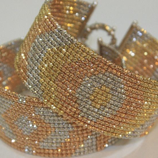 This is laser beads bangle made in gold with our company logo. It is nice to match with formal dressing. Various designs for bangles, earrings are available