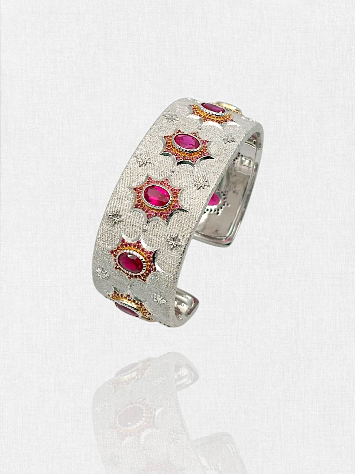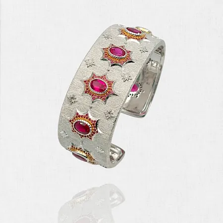 Sterling Silver bangle, White Rhodium plated with Ruby colour CZ