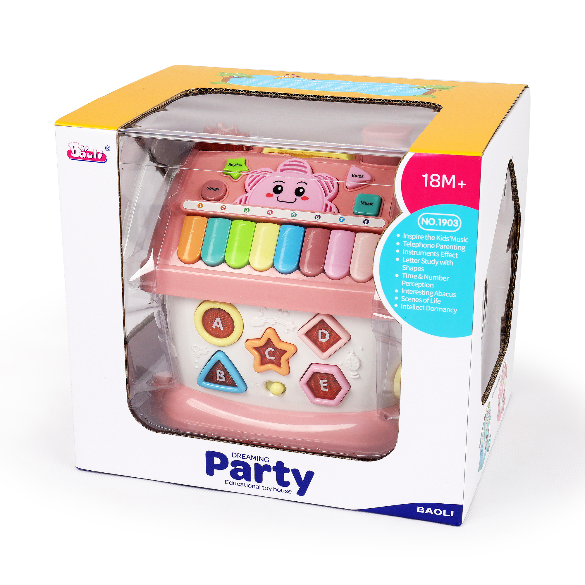 This interactive playhouse toy combines music, learning, and imaginative play in one exciting package. It is equipped with features such as a mini car, a simulated mobile phone, and a cartoon clock, designed to allow children to enjoy hours of educational fun while learning basic skills.