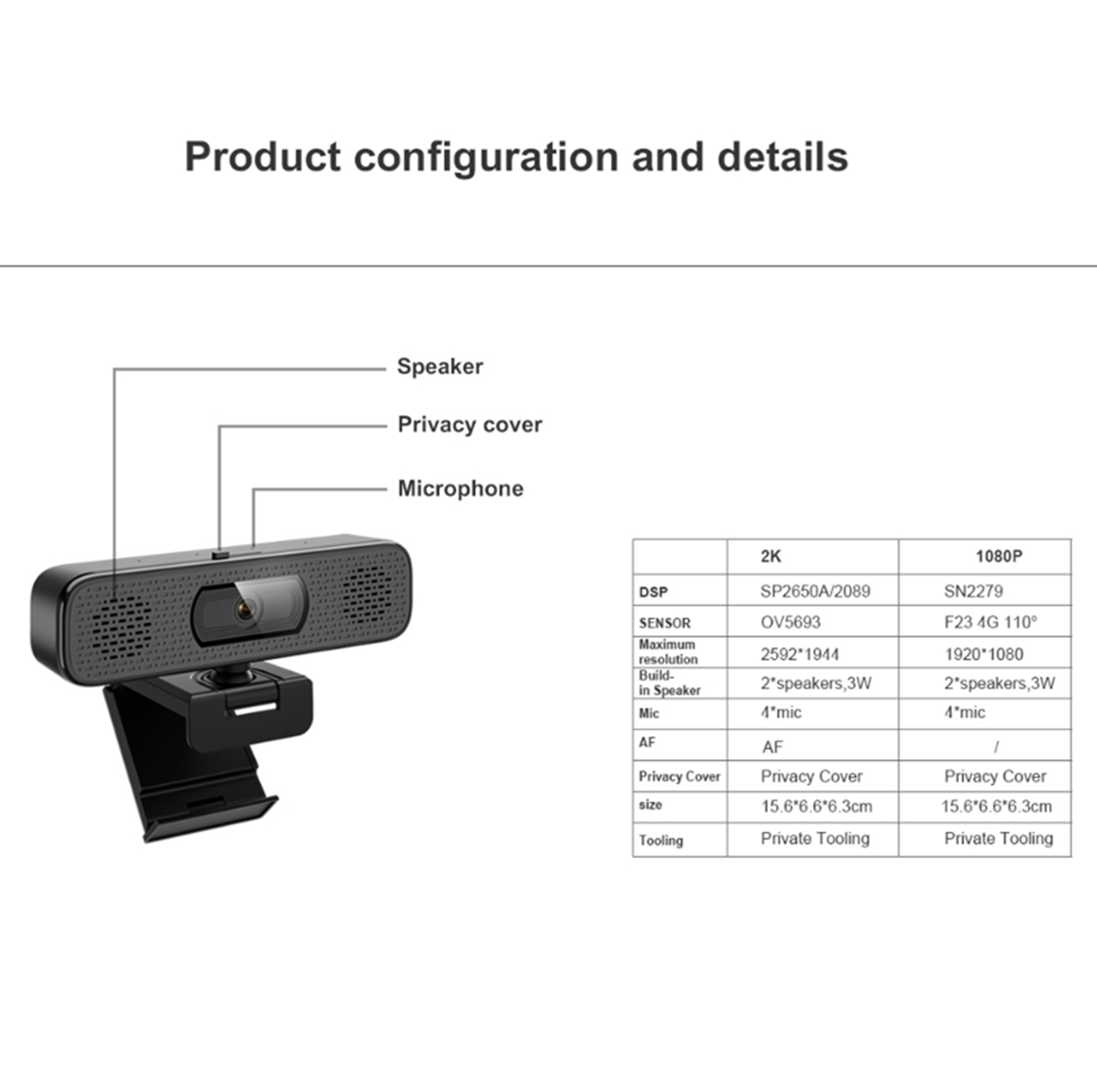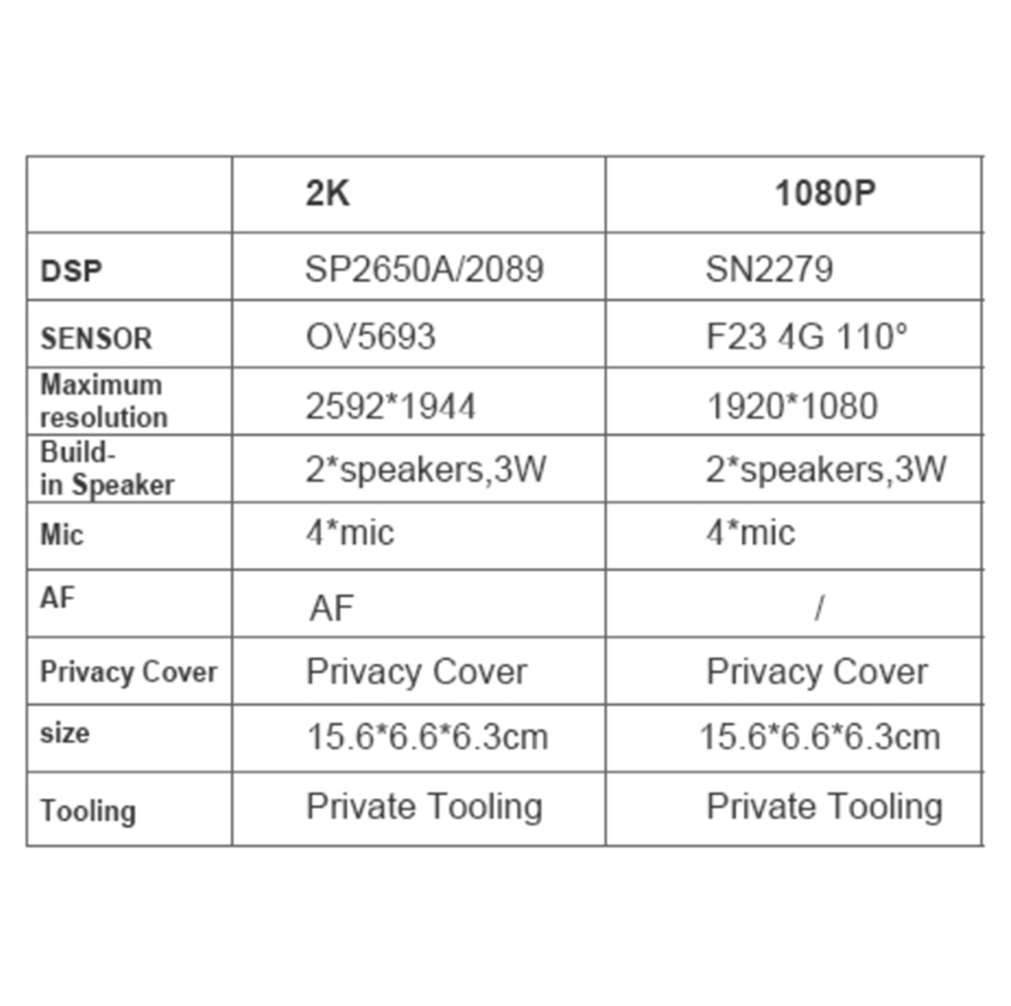 DSP:2K: SP2650A/20891080P: SN2279Size: 15.6*6.6*6.3cmTooling: Private toolingBuild-in speakers: 2*speakers, 3W